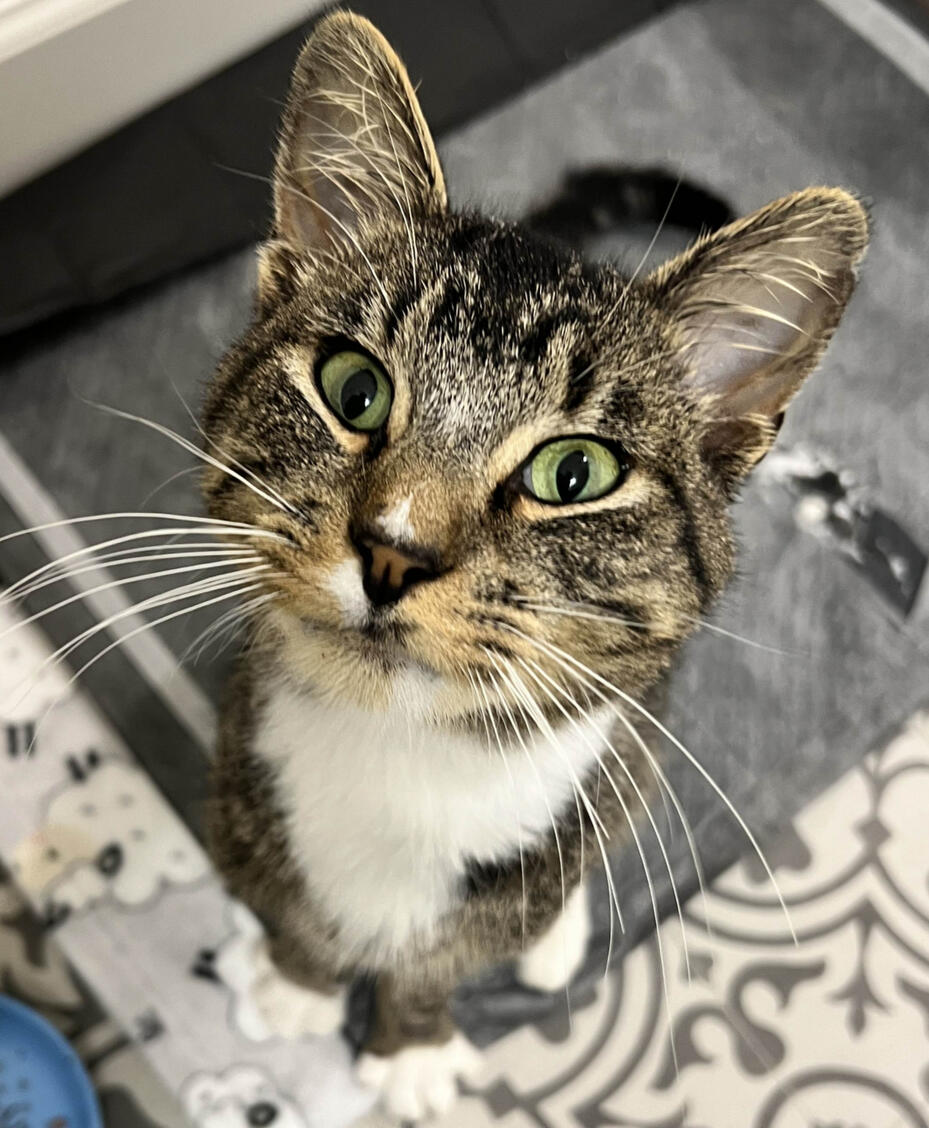 I went for a walk on Halloween night and found Boo crying on the outskirts of a lot near some new build homes that no one had moved into yet. Halloween was near freezing and raining all day, so he was wet and shivering.I picked him up and he immediately cuddled, rubbed his face on me and made biscuits the entire 30ish minute walk back to my place! Those I asked told me that he had shown up earlier that day, following people and trying to get into their garages.I kept him for the night and got him all warm and snuggly. Although I was worried because he was very malnourished, wobbly and his personality was definitely not of a feral or farm cat!